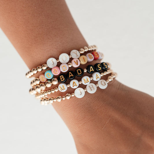 Vibe - Letter Gold Beaded Bracelet- WHOLESALE