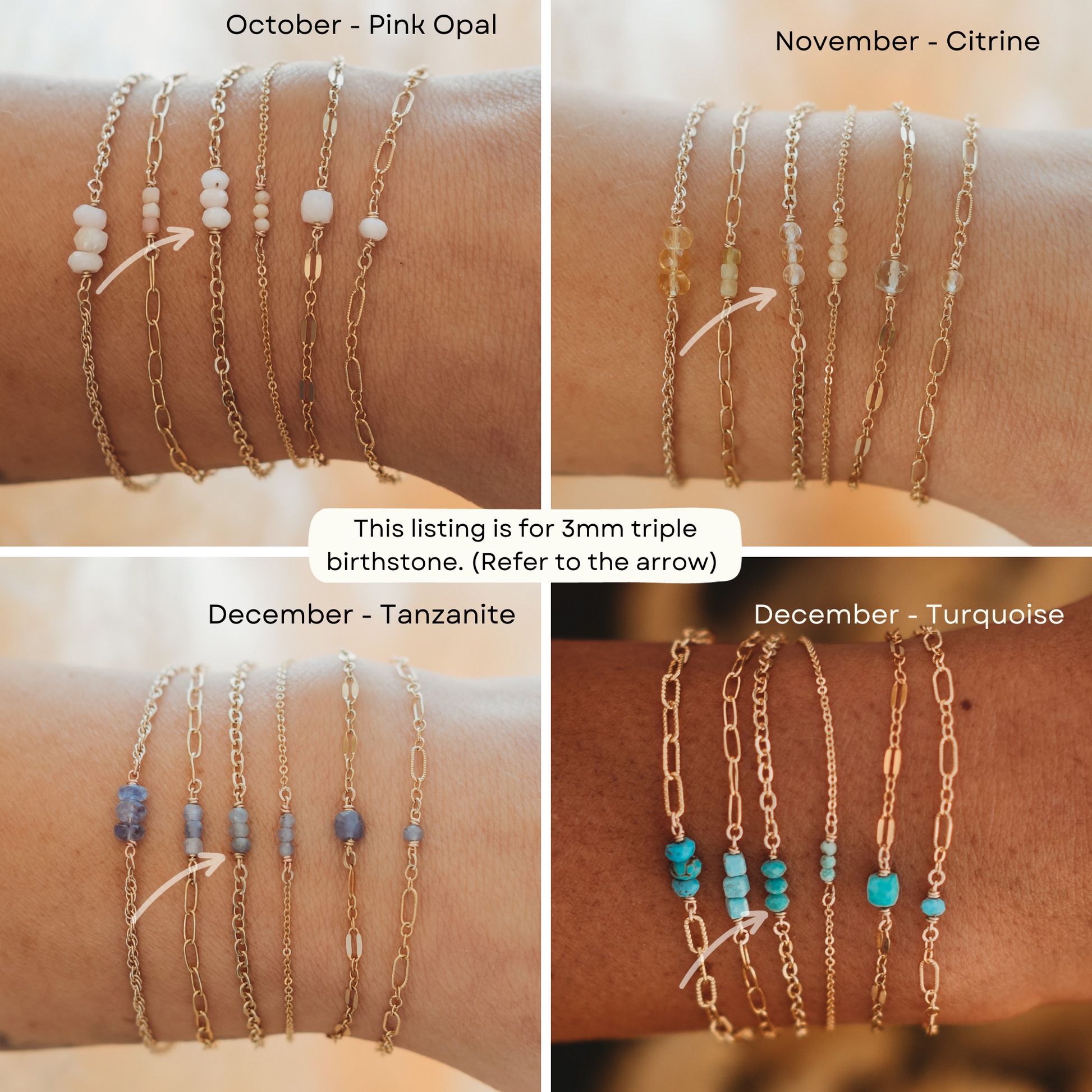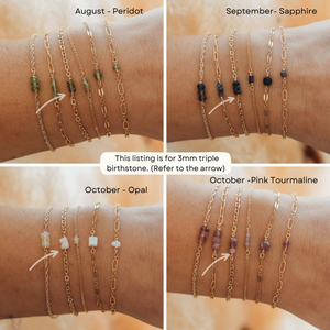 ++THIS listing is for the 3mm triple birthstone connector made specifically for jewelry making and permanent jewelry! Please refer to the photos and arrows!++