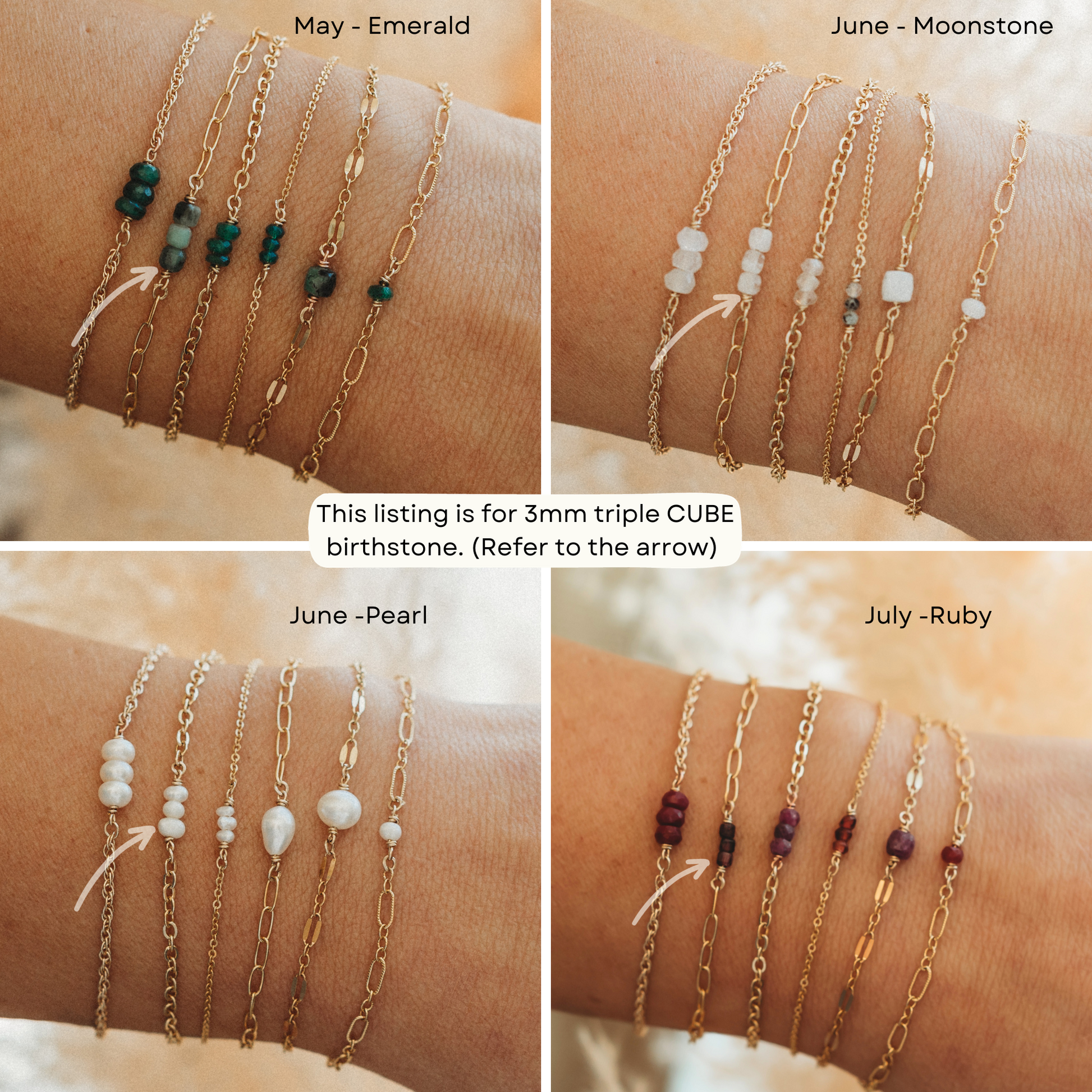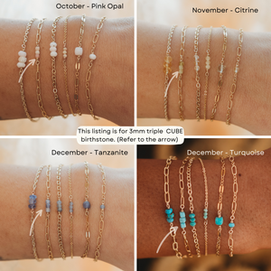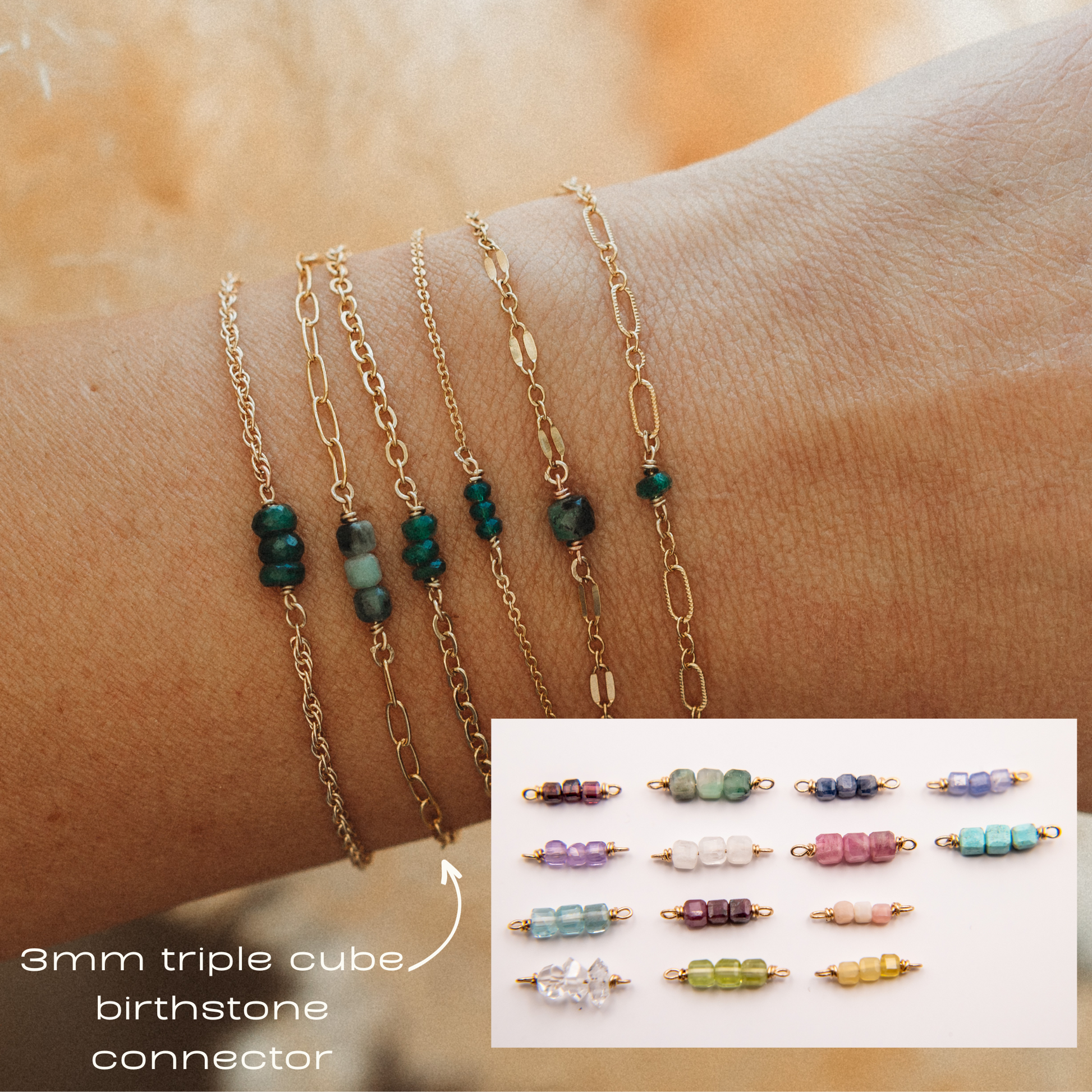 ++THIS listing is for the 3mm triple SQUARE/CUBE birthstone connector made specifically for jewelry making and permanent jewelry! Please refer to the photos and arrows!++