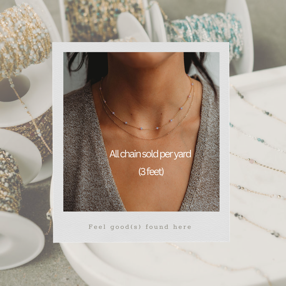 THIS IS A PREORDER...What does that mean?! This is made-to-order by our team of "mama makers'. Expect 1-3 weeks for delivery! 14k Gold Fill, Sterling Silver and 14k Rose Gold Fill permanent jewelry chains sold in 3 foot (1 yard) increments! Tons of heart beads with about 13 connectors per foot! The heart gems are darling but not in your face...some do not even realize they are hearts when they are drawn to them but when I point them out, they love them even more!