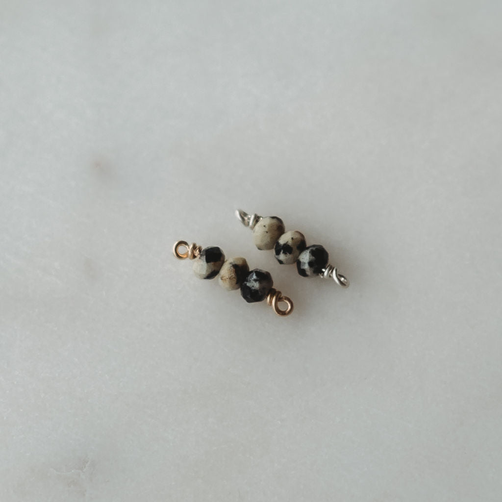 Dalmatian Jasper is so amazing and everyone sees it a little differently ...from cow print to leopard or just a fun splash of black....it is one to have in rotation! Made with 14k Gold Fill or Sterling Silver 24 gauge wire.