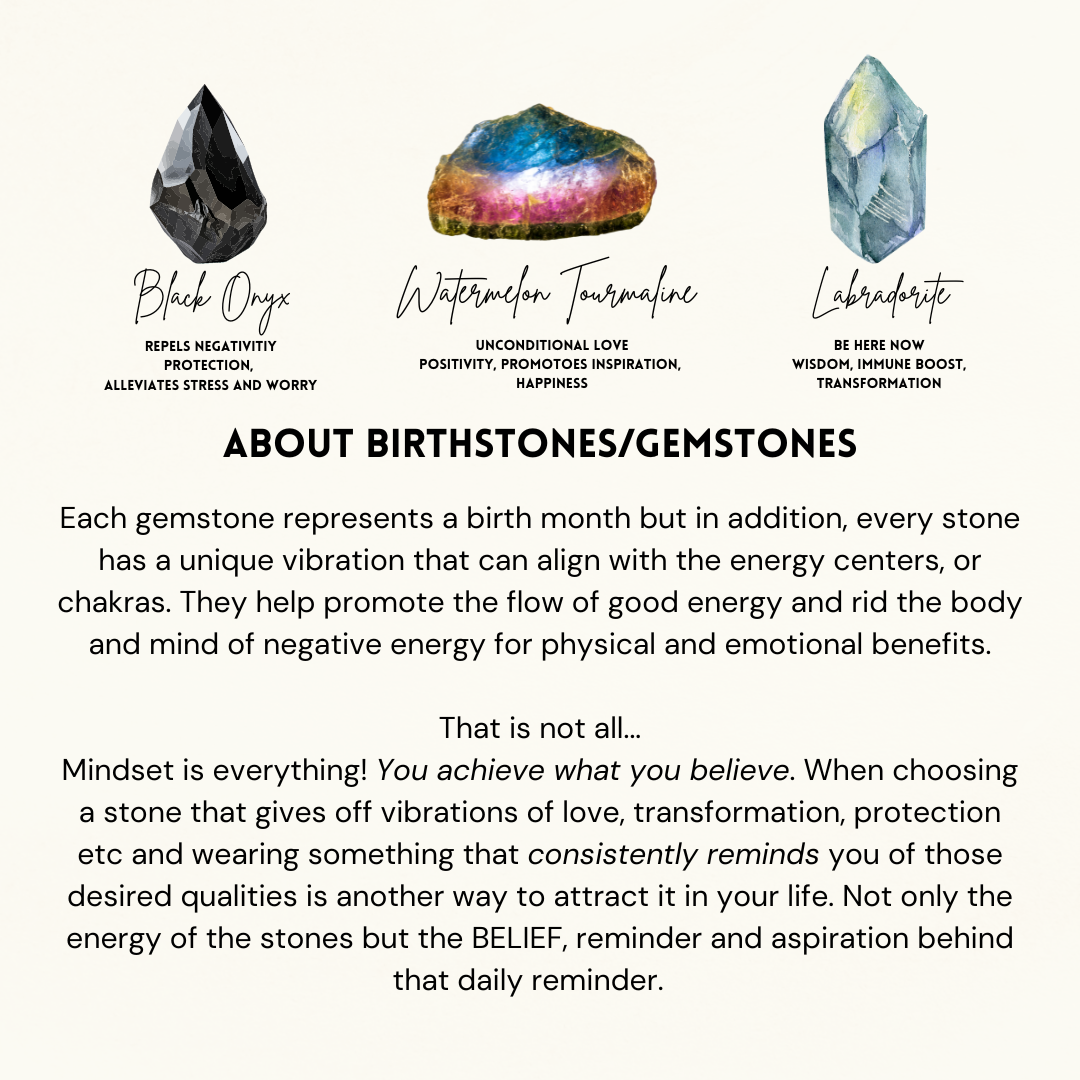So perfect to stack! Whether you treat your gemstone bracelet as a pop of color, attracting a certain something in your life or serving to rep yourself or a loved one...it is all unique to you and that's all that matters! But as a reminder, you can choose a gemstone you love because even though these are birthstones, the gemstones have amazing properties on their own!
