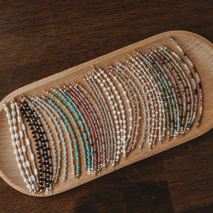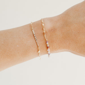Gemma Gemstone Glow Ups are made from 3mm genuine gemstones and 2mm gold fill and sterling silver beads. Style 1 is alternating gem and metal beads, style 2 is 3 metal beads with a gemstone bead! Please refer to the second photo to see the gemstone guide!