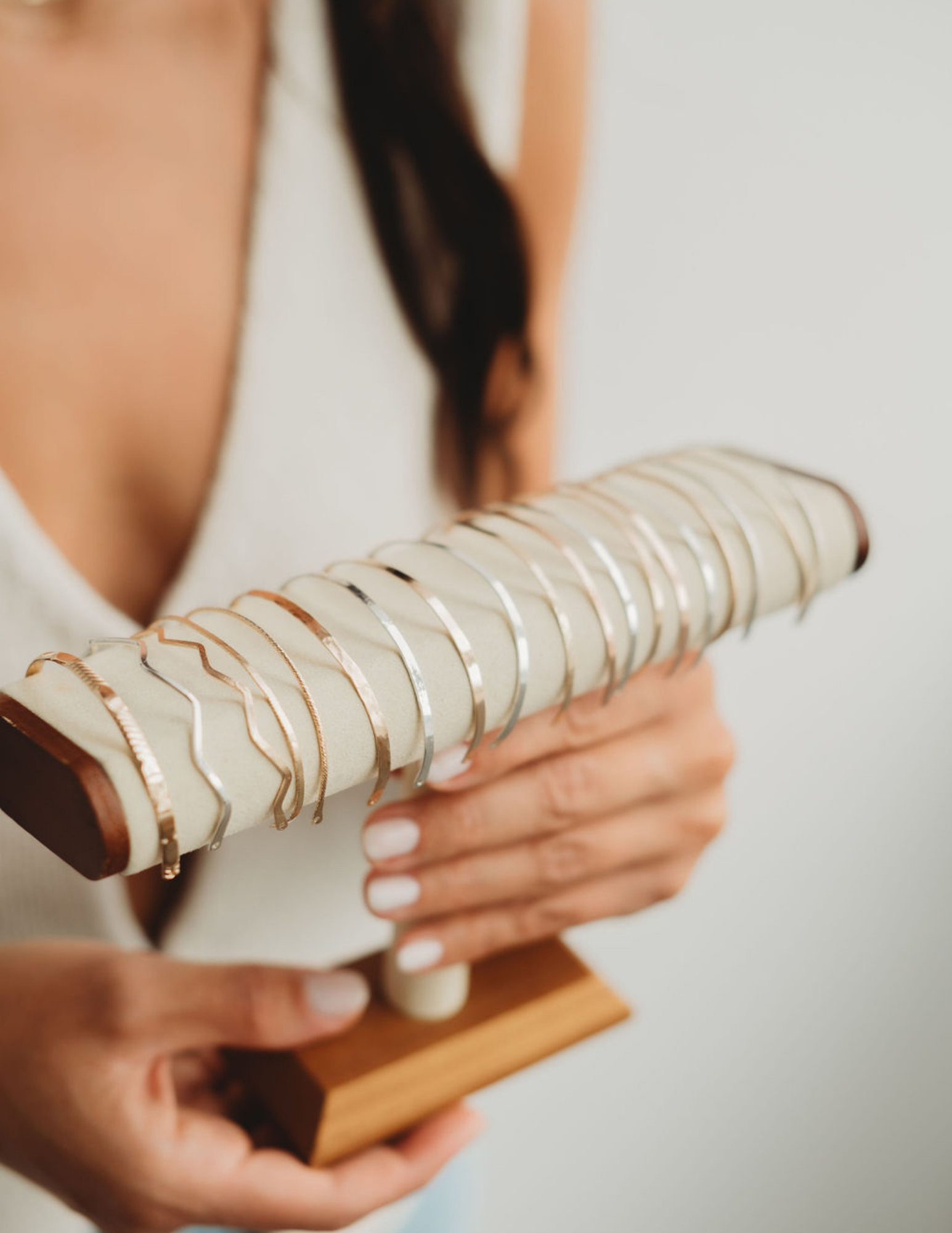 It is such a beautiful and EASIER way to offer bangles vs solid bangles! They are handmade with 16 gauge, 14 gauge or 12 gauge! These bangles measure 5 inches and are shaped as a more "cuff" shape enabling the bangle to stay rather than turn around on your wrist like a standard bangle...if you want that bangle movement or need something larger, please view our Round Bangles!