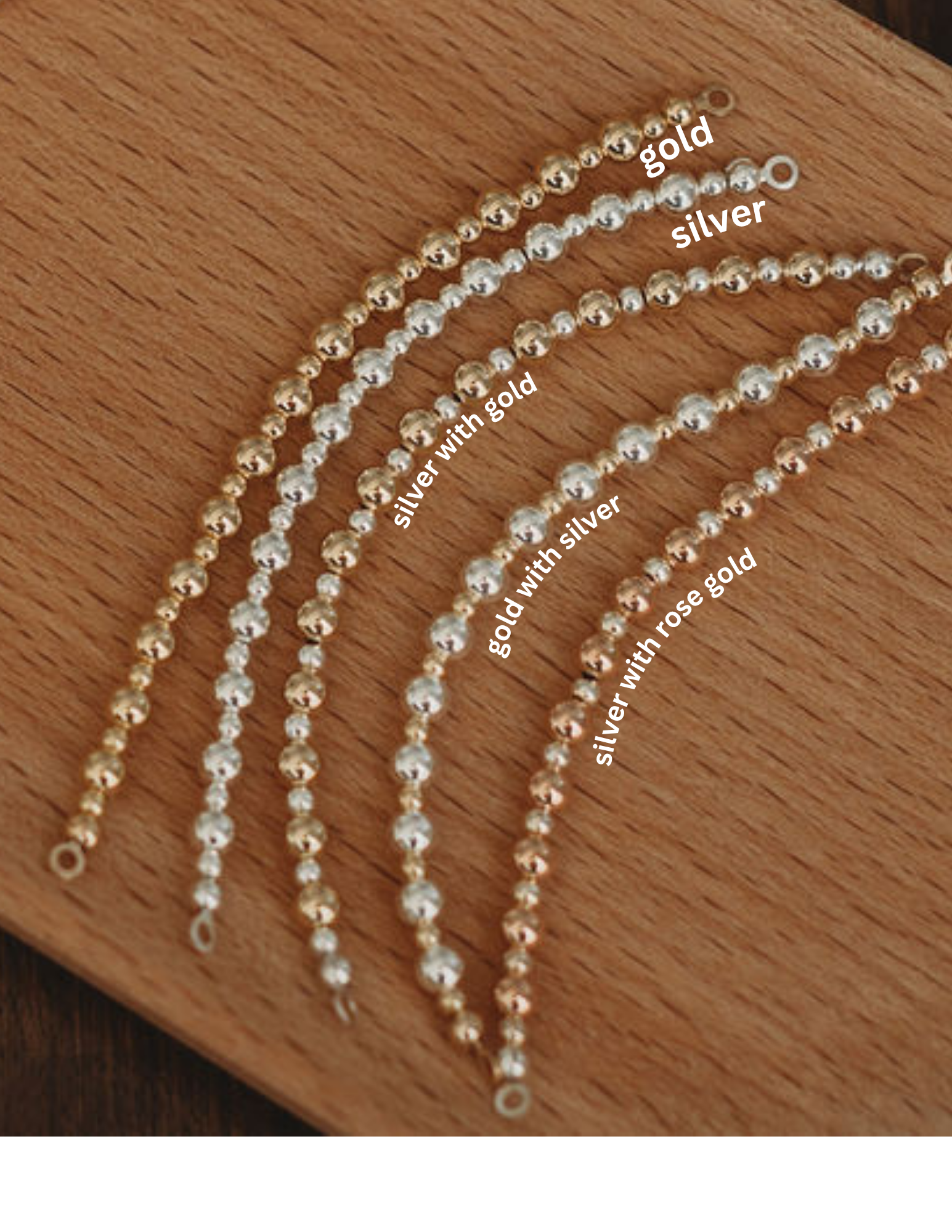 This is the HALLIE style - large is alternating 4mm and 2.5mm , the small style is alternating 3mm and 2mm 14k gold fill and sterling silver beads.