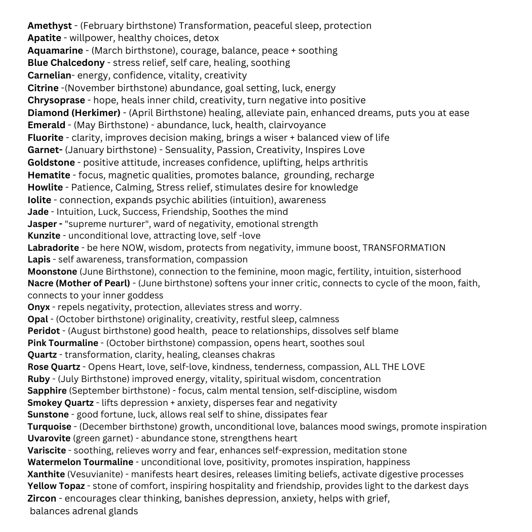 These are so unique and special. Not only do you get a beautiful array of gemstones spelling out a special meaning only YOU know, but the stones have amazing properties as well. The double meaning of these pieces of jewelry are unmatched!