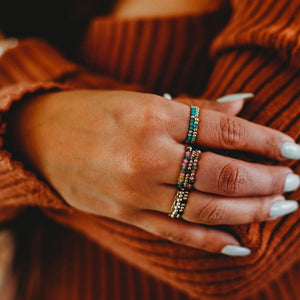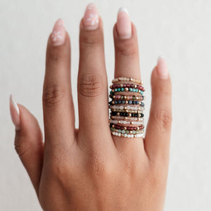 These gemstone rings have 2mm metal beads (14k gold fill, rose gold fill or sterling silver) with 2mm gemstones! Pair with our metal rings or another version of gemstone rings to create an amazing stack.