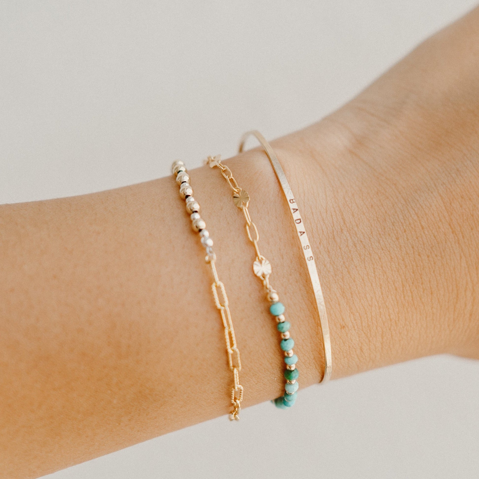 THESE ITEMS ARE HANDMADE! We have a tribe of stay at home and working mamas creating bangles, glow ups, chain, rangles, connectors and any other handmade creation we dream up! Everything is ready to ship OTHER THAN the chain that islisted as "preorder" and that is taking about one week to ship from the day of purchase.