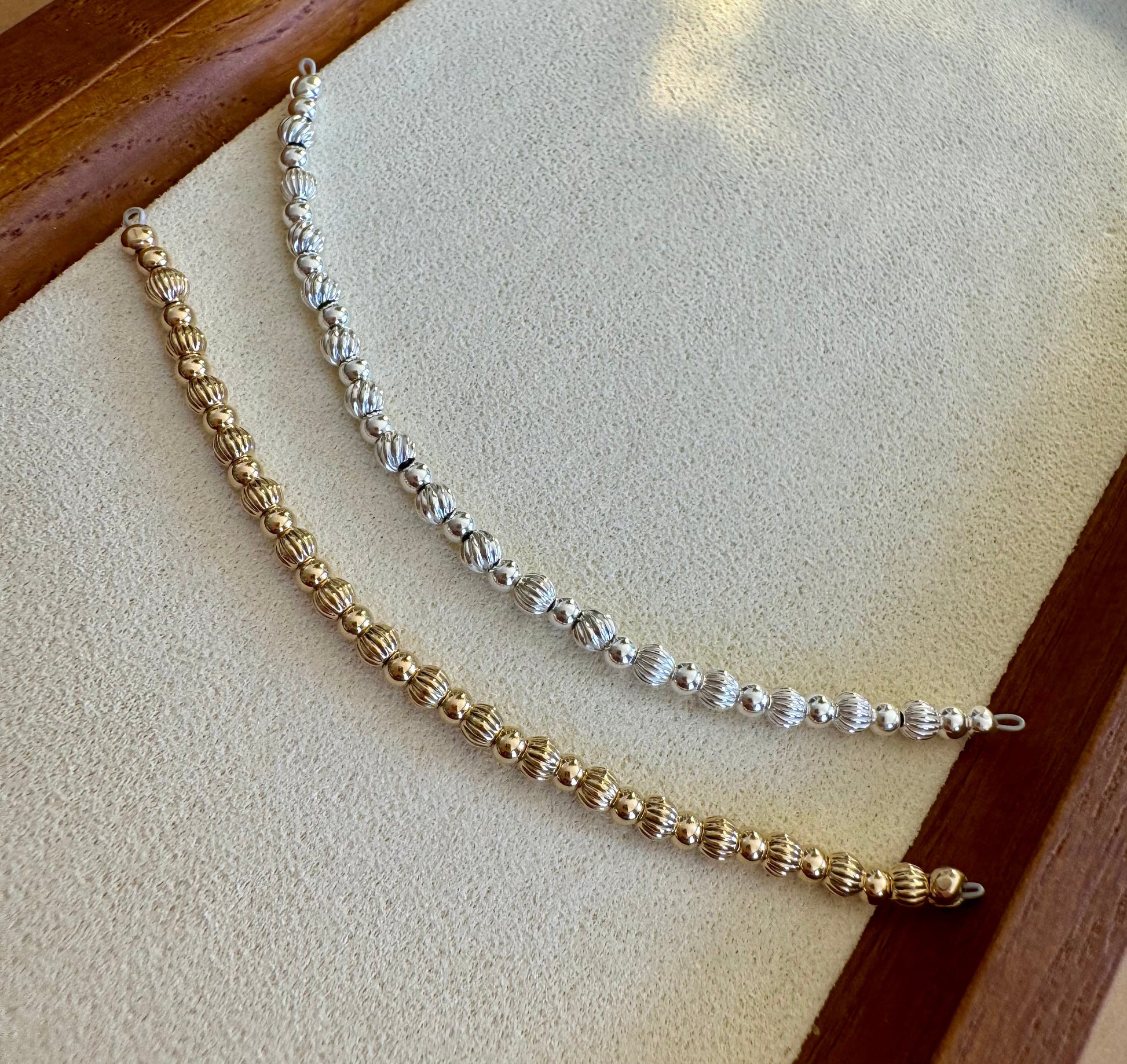 This is for the POPPY style! Textured twisted "pumpkin" beads alternating with 2mm beads. 14k Gold Fill and Sterling Silver.