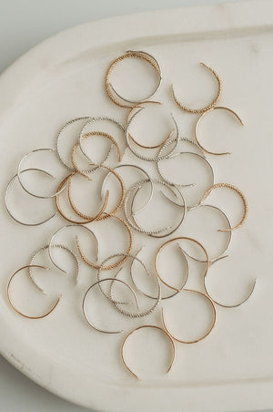 A new permanent jewelry ring MUST-HAVE! Handmade with 14k Gold Fill or Sterling Silver in two different styles in 2 size choices! Sparkle or hammered texture. Made with 16 gauge 14k Gold Fill or Sterling Silver.
