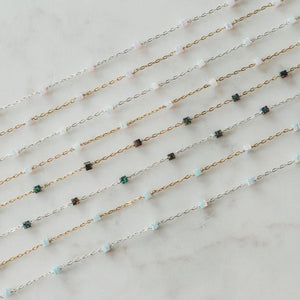 Opal is no doubt within my top 2 best sellers with the handmade chains! They serve as the October birthstone but also just a beautiful "neutral" stone that a lot of people turn to when choosing gemstones for permanent jewelry!