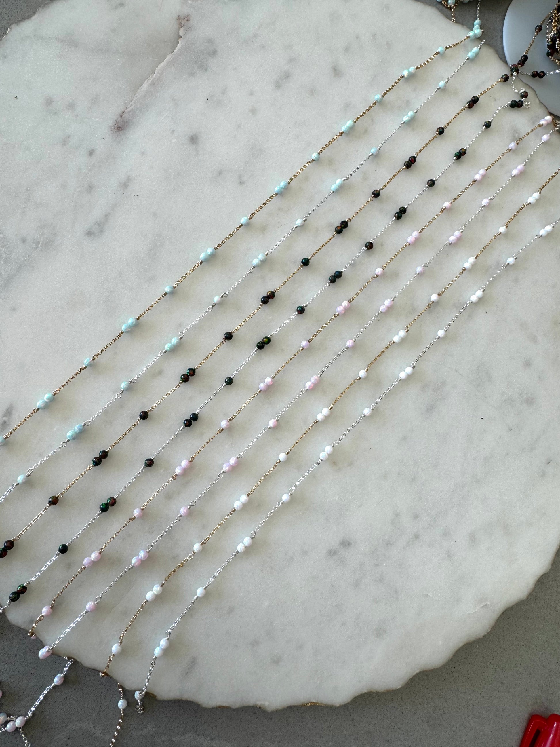 Opal is no doubt within my top 2 best sellers with the handmade chains! They serve as the October birthstone but also just a beautiful "neutral", but magical stone that a lot of people turn to when choosing gemstones for permanent jewelry!