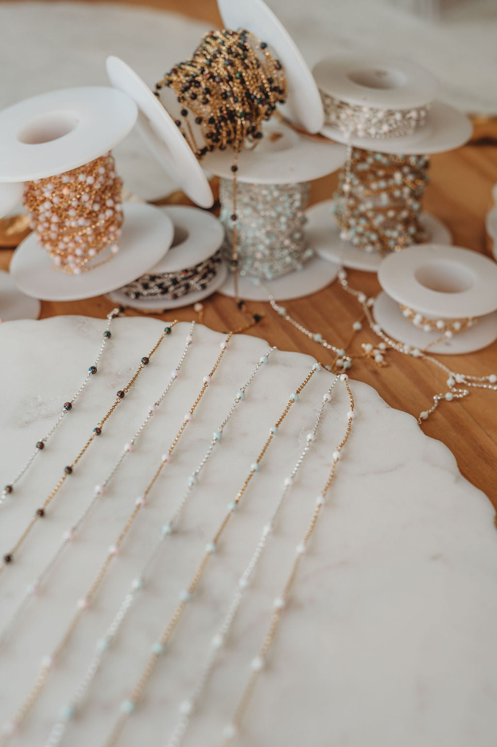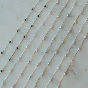Opal is no doubt within my top 2 best sellers with the handmade chains! They serve as the October birthstone but also just a beautiful "neutral", but magical stone that a lot of people turn to when choosing gemstones for permanent jewelry!