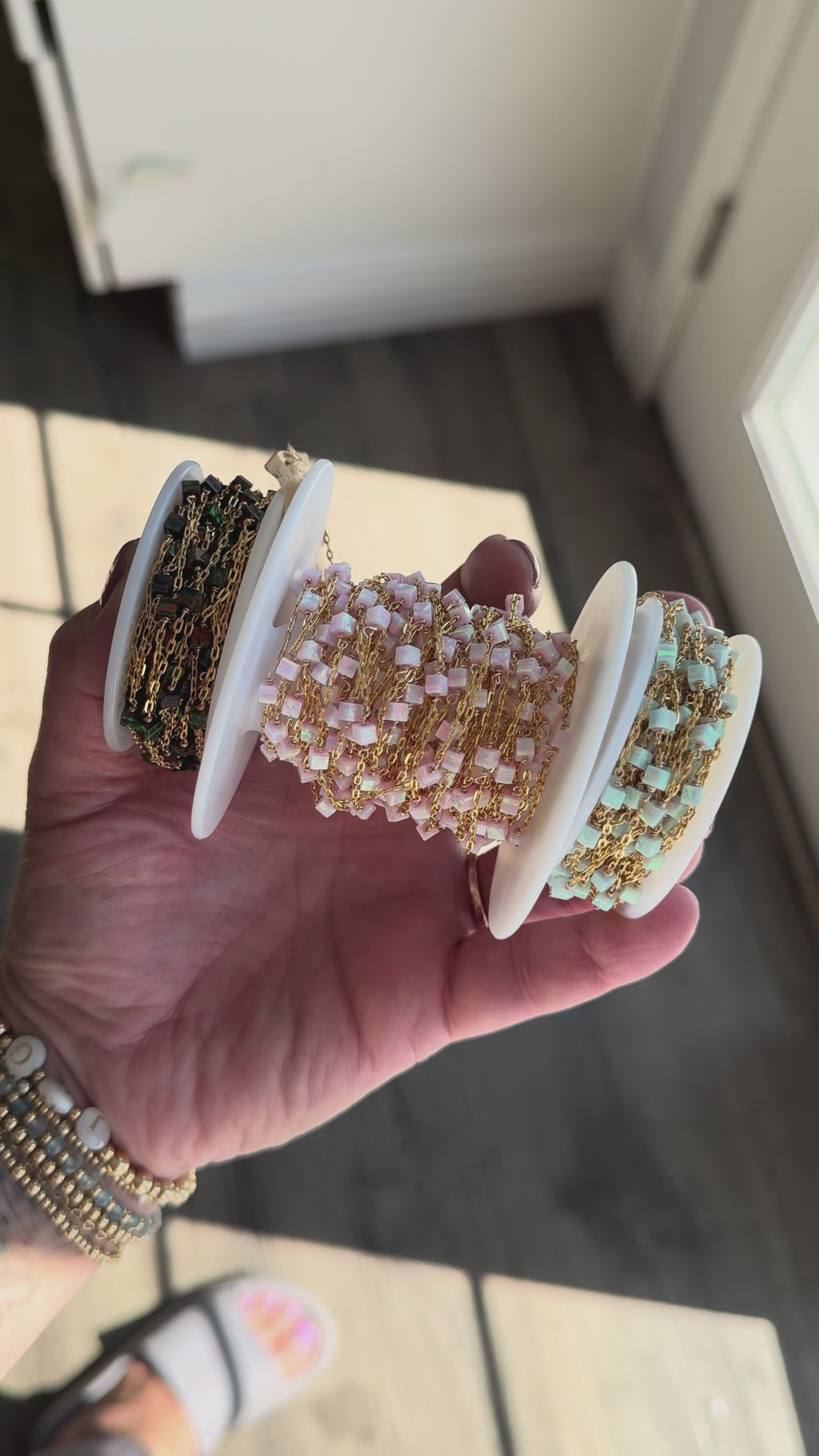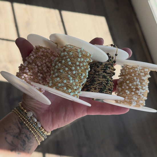 14k Gold Fill and Sterling Silver opal permanent jewelry chains sold in 3 foot (1 yard) increments! Tons of 3mm opals with about 15 connectors per foot! This style is definitely my best-seller for my PJ biz! a 24 gauge jump ring can be used for this chain!