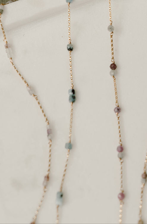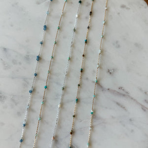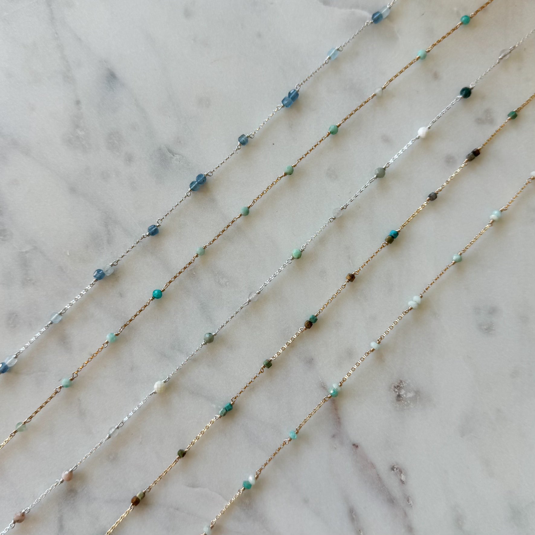 These chains are handcrafted various beautiful gems with shades of blue! Never made before so when they are gone, they are gone!
