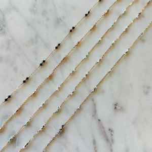 These chains are handcrafted with tiny 2mm gemstone beads and middle 2.5mm faceted gold fill bead in center. These are darling and the tiny gemstones have been selling more than the 3mm versions!