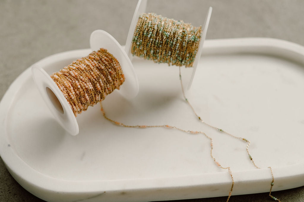 READY TO SHIP Tiny Turquoise + Pink Opal Gemstone Chain (3 feet)