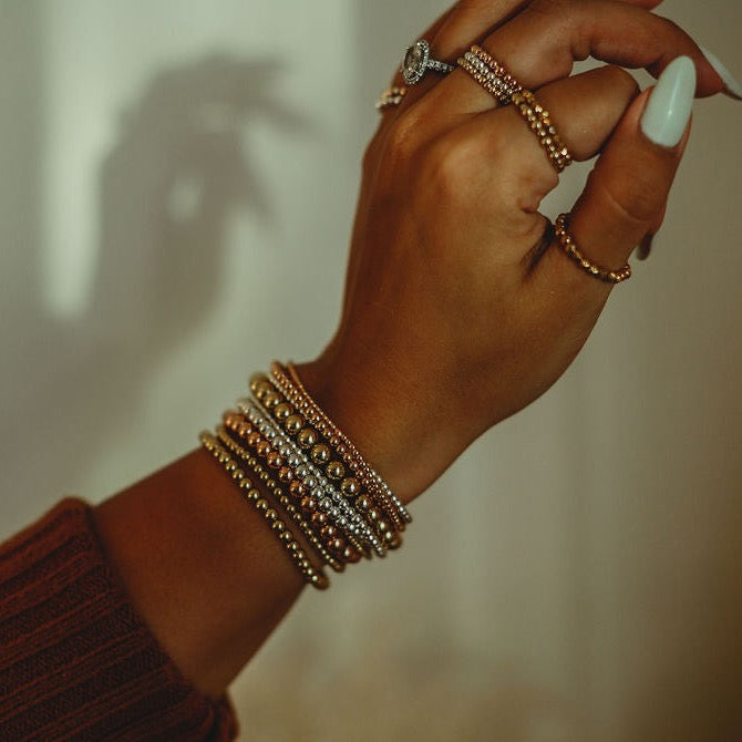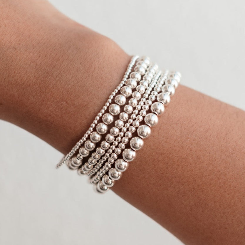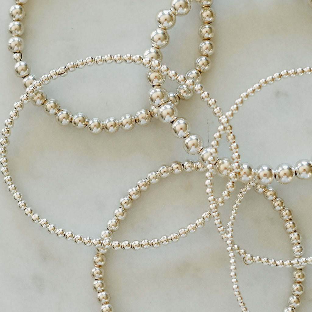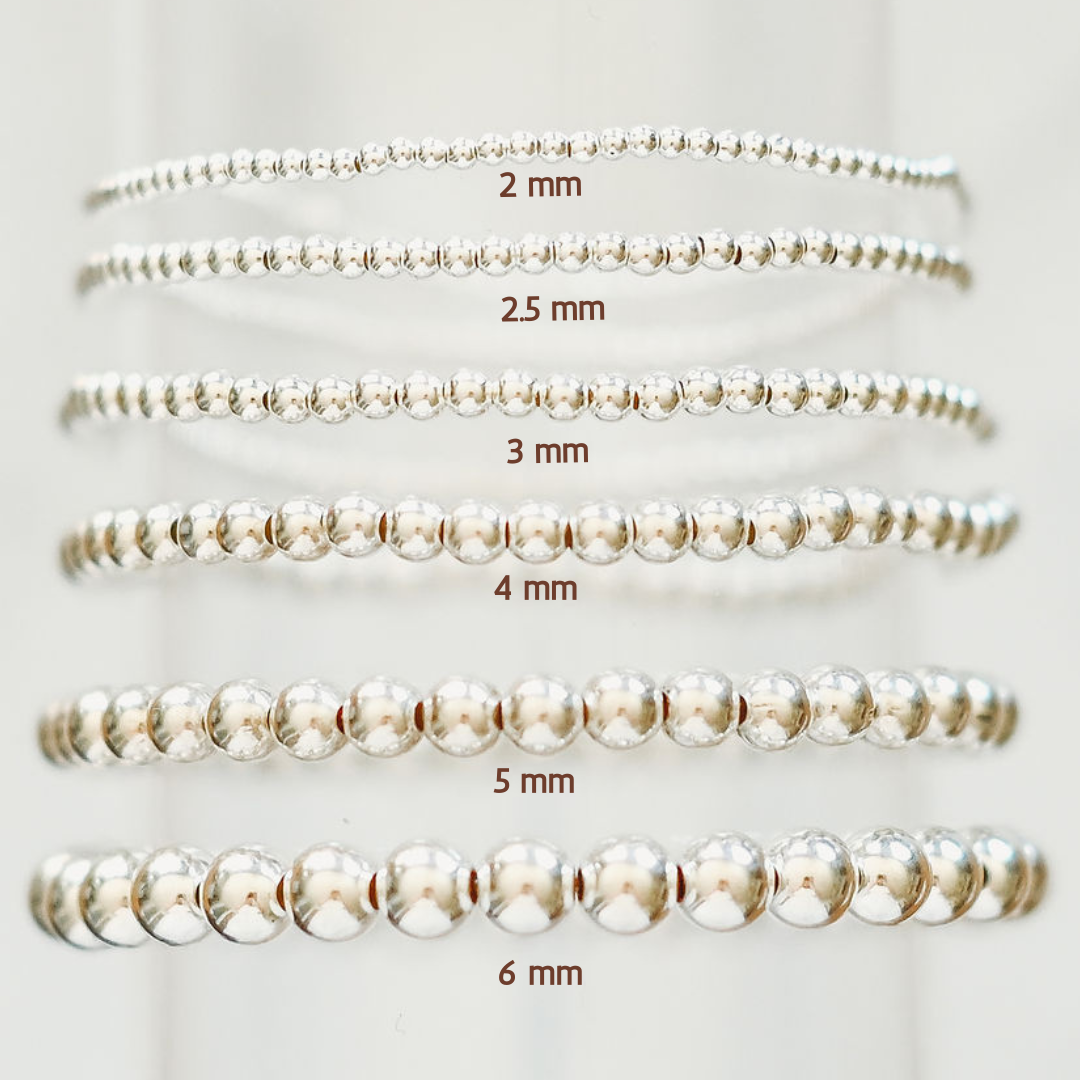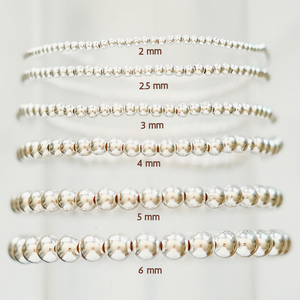 These simply beaded bracelets are amazing on their own or add to a stack. These are a classic bracelet to have in stock and so easy to stack with permanent jewelry or the other beaded styles! Choose your length and the size of beads from teeny tiny 2mm to 6mm.