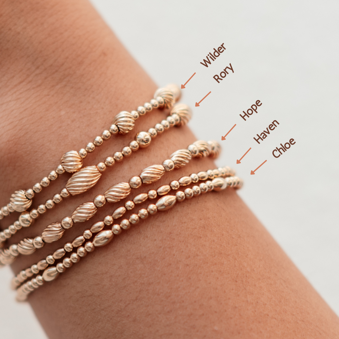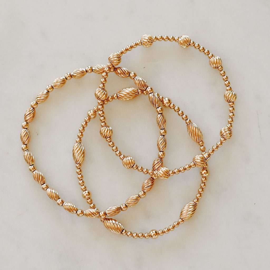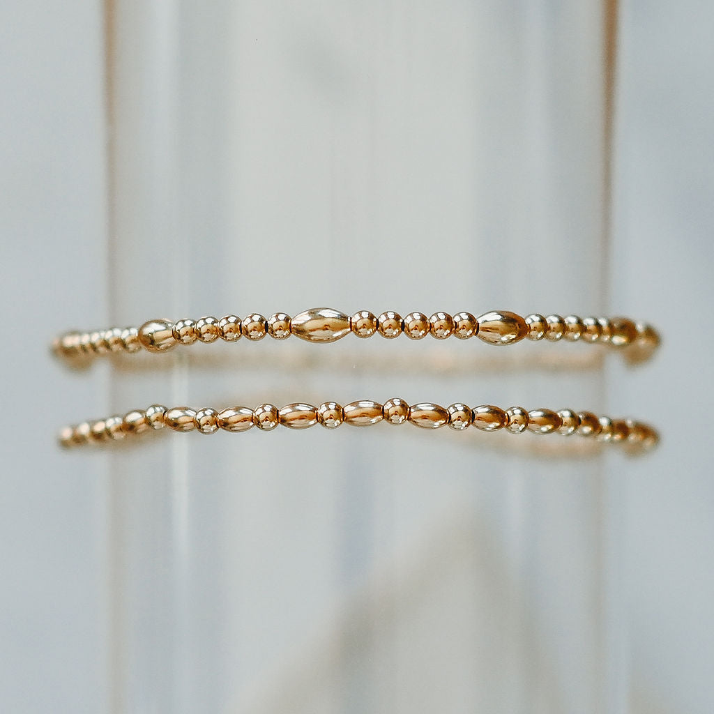 I coined these style group "The Poppies" because they add a pop of something so special to a stack. Textured and the special bead shapes adds a touch of fancy to any stack and beautiful enough to wear alone!