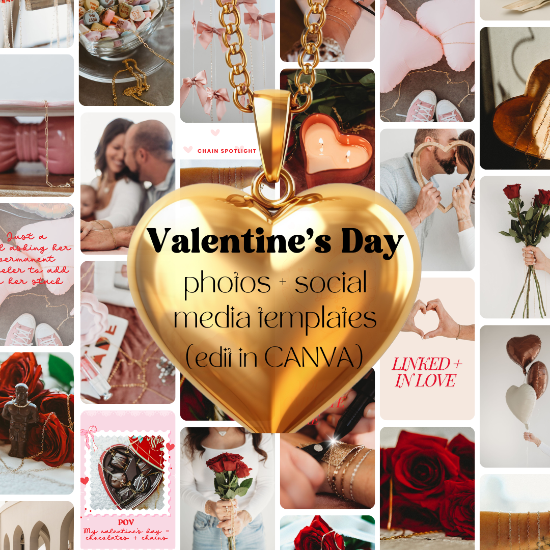 Get your business ready to shine this Valentine’s Day with our Professional Permanent Jewelry Photos and Editable Social Media Templates Bundle!